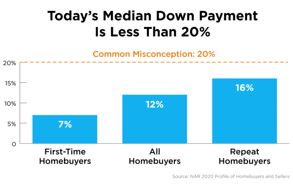 Is the idea of saving for a down payment holding you back from buying a home right now? You may be eager to take advantage of today’s low mortgage rates, but the thought of needing a large down payment might make you want to pump the brakes. Today, there’s still a common myth that you have to come up with 20% of the total sale price for your down payment. This means people who could buy a home may be putting their plans on hold because they don’t have that much saved yet. The reality is, whether you’re looking for your first home or you’ve purchased one before, you most likely don’t need to put 20% down. Here’s why.