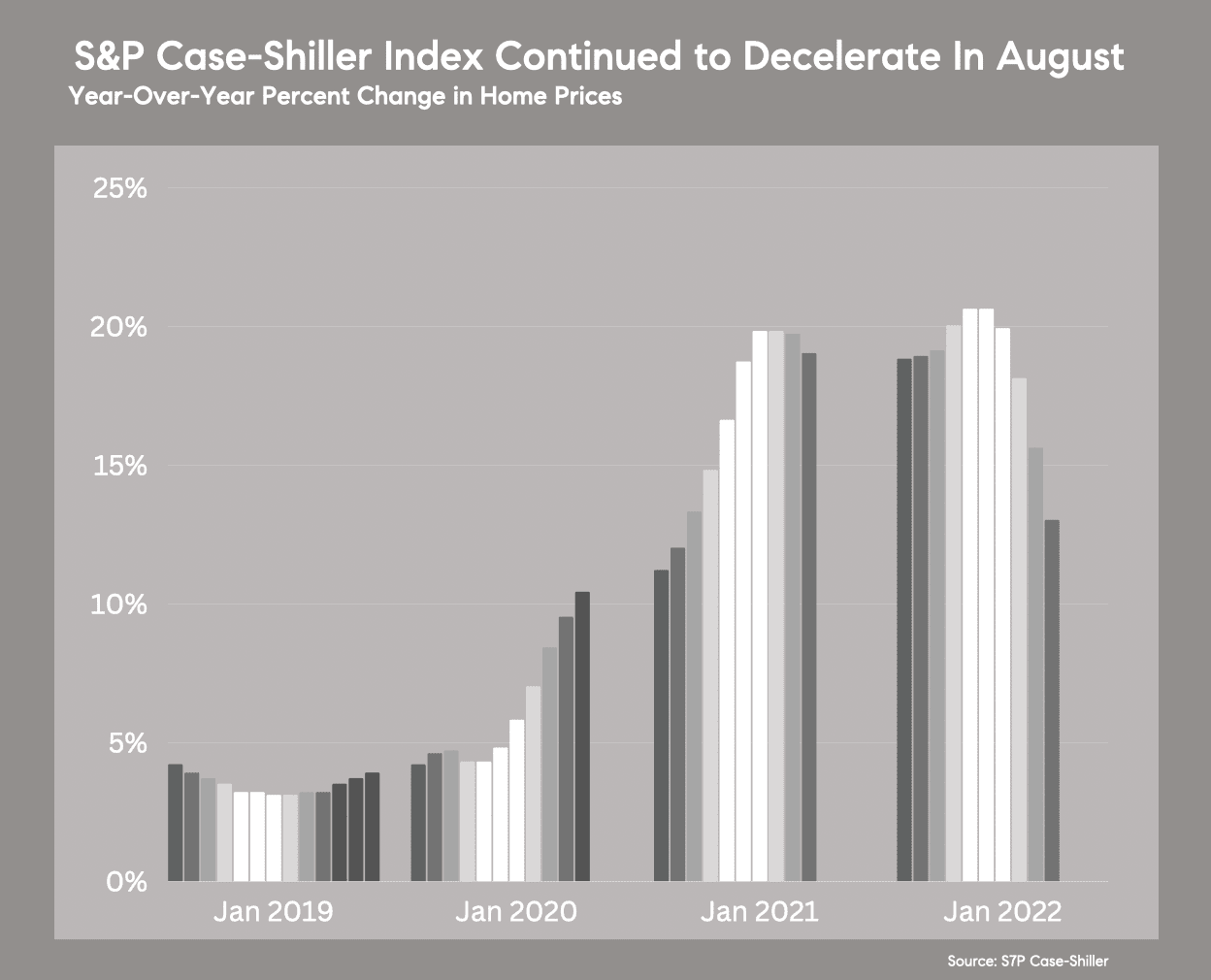 This deceleration is happening because higher mortgage rates are moderating demand, and as a result, easing the buyer competition and bidding wars that previously drove prices up.