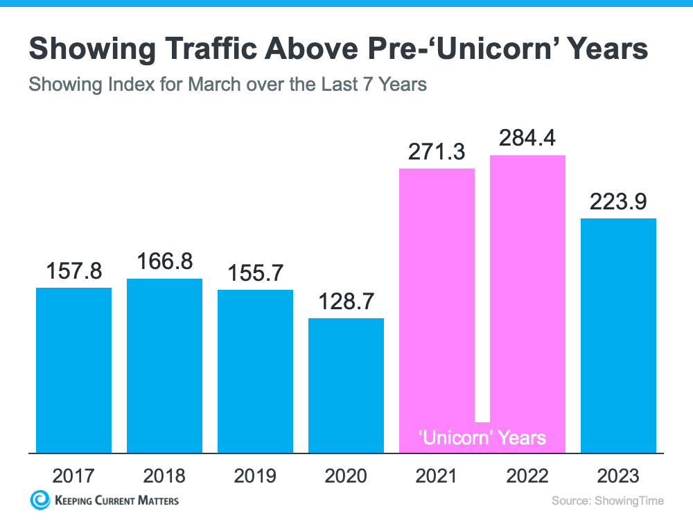 If you look at the headlines, you’d think there aren’t any buyers out there. We still sell over 10,000 houses a day in the United States. Of course, buyer demand is down from the two ‘unicorn’ years. But, according to Showing Time, if we compare it to normal years (2017-2019), we can see that buyer activity is still strong (see graph below):